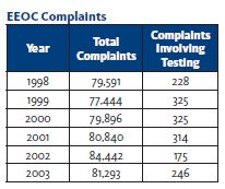 Periodically employers are inclined to believe that professionally developed assessments are lightning rods for litigation. In reality, the appropriate use of assessments does not tend to motivate job applicants to file lawsuits. In fact, applicants commonly report that tests are viewed as a much fairer and objective way to help select employees when compared to interviews where personal bias can substantially affect a hiring decision. As reported below, a very small percentage (0.3%) of recent Equal Employment Opportunity Commission (“EEOC”) lawsuits have focused on testing.